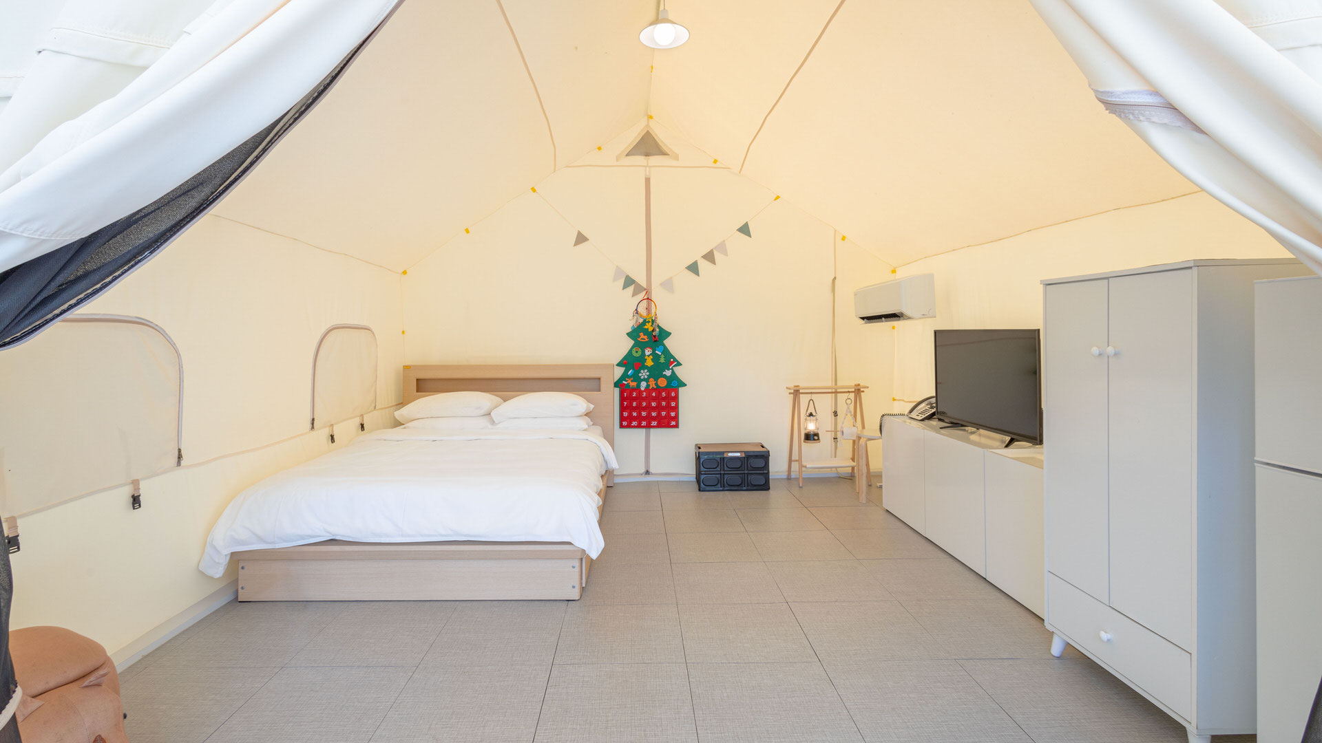 - 집기품목 : TV, 금연, 냉장고, 에어컨, 드라이기, 커피포트, 타월, 샴푸, 바디워시, 취사시설/도구, 개별바비큐, 와이파이, 침대방, 욕실용품, VOD, 글램핑