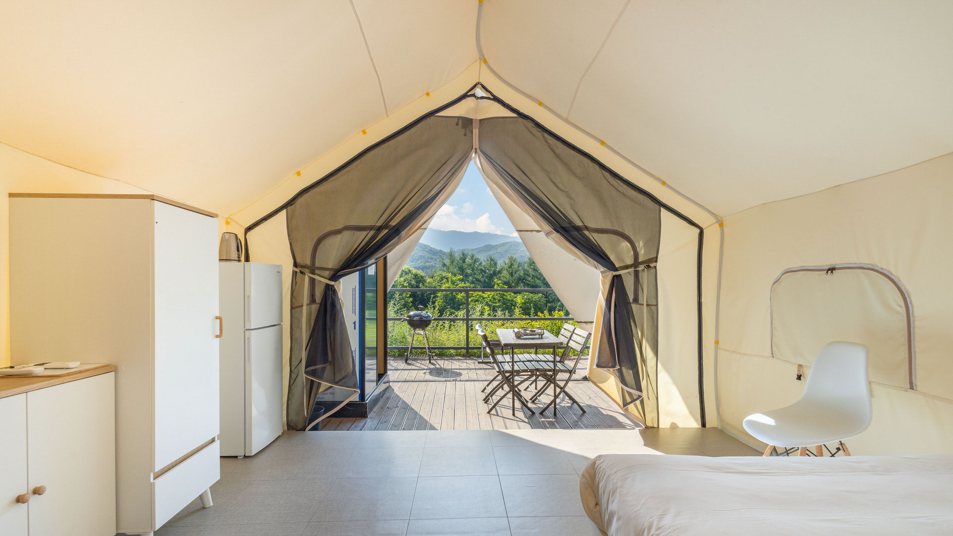 • 집기품목 : TV, 금연, 냉장고, 에어컨, 드라이기, 커피포트, 타월, 샴푸, 바디워시, 취사시설/도구, 개별바비큐, 침대방, 와이파이, 욕실용품, VOD, 글램핑