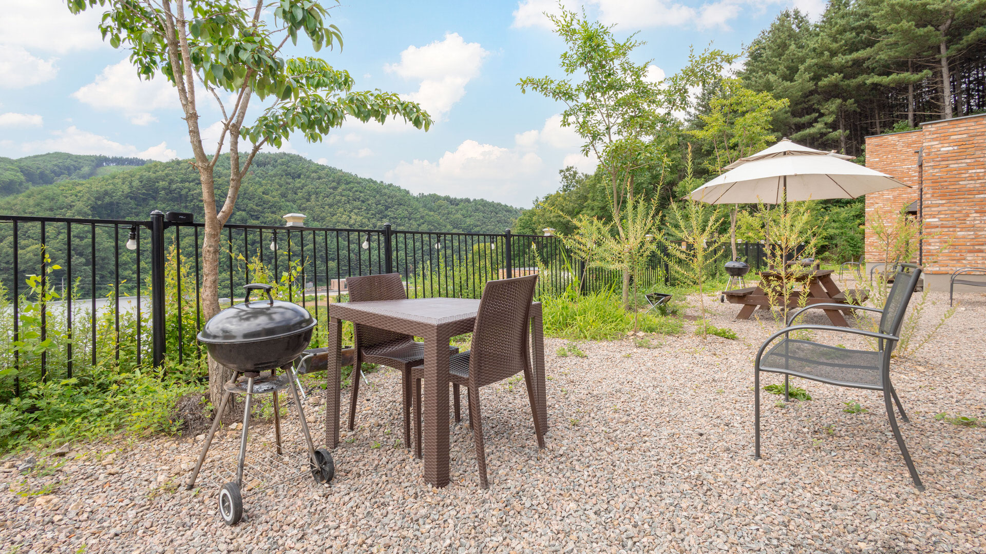 - 집기품목 : TV, 금연, 냉장고, 에어컨, 드라이기, 커피포트, 타월, 샴푸, 바디워시, 취사시설/도구, 개별바비큐, 전자레인지, 테라스, 와이파이, 침대방, 욕실용품, VOD, 산전망